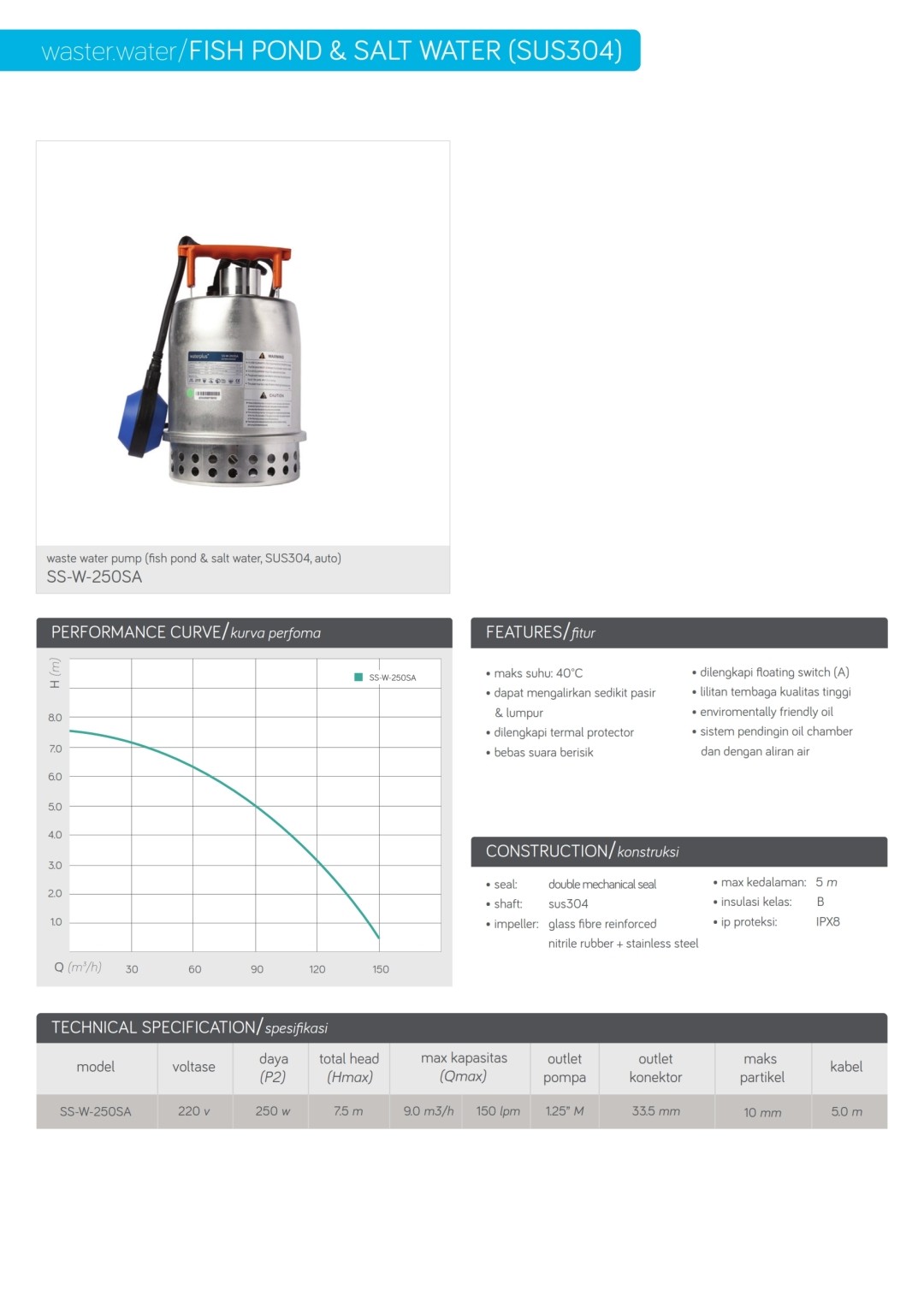 DS-4S05008C-S1sub. deep well pump w / control box (30m cable) 0.75hp