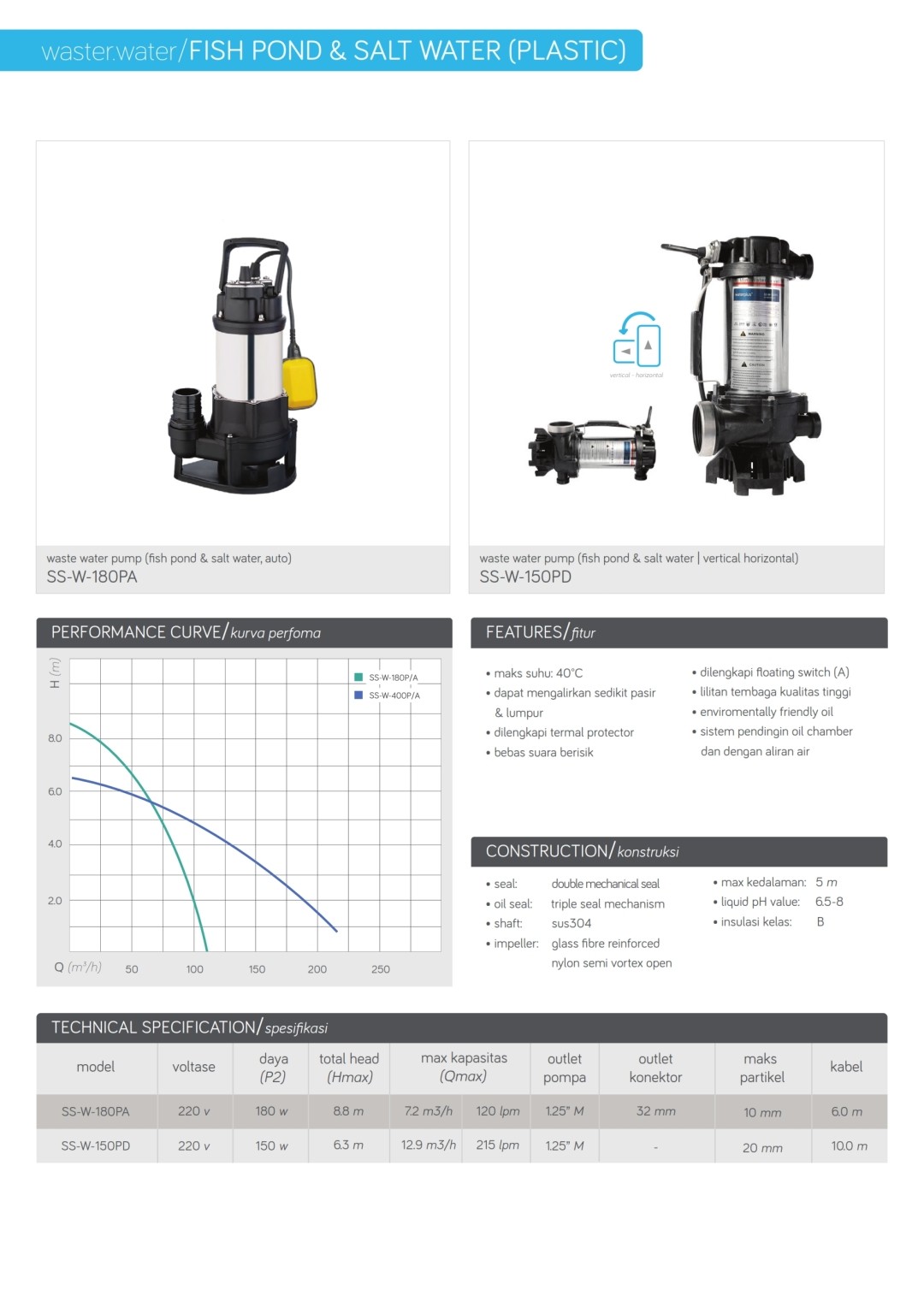 SS-W-250Awaste water pump (auto) 250W