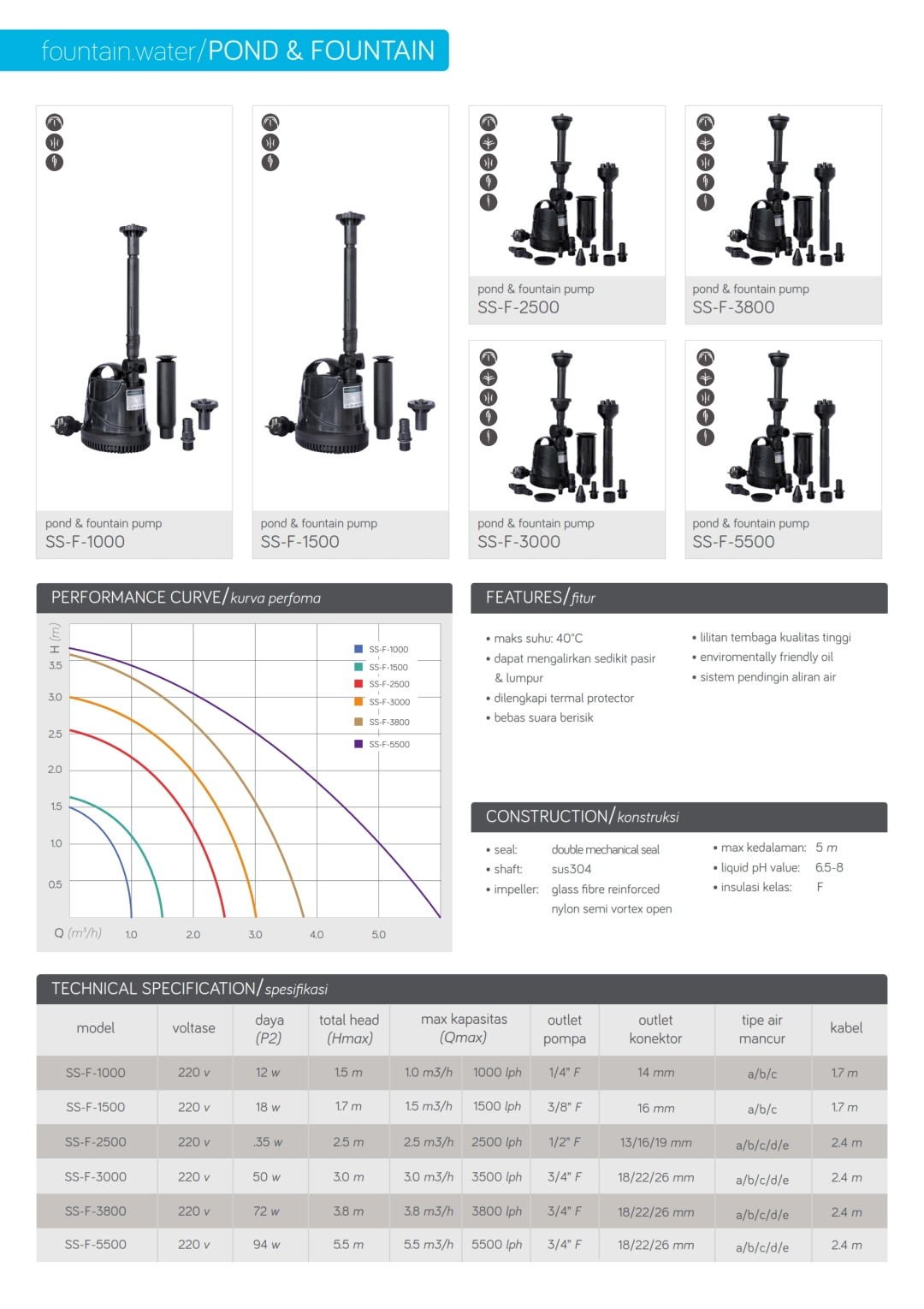 SS-F-5500aquarium fountain pump 94w